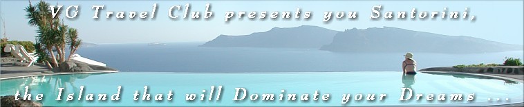 VG Travel Club presents you a web site about Santorini with information about the island and its hotels presented in the most convenient way to help you get through with your booking. Feel free contacting us for further information. Have a lovely trip to the breathtaking island of Santorini. |